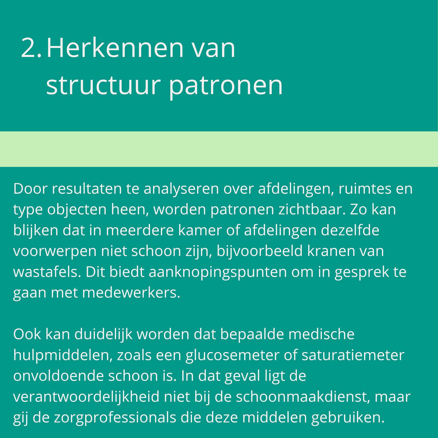 Binnen project Hoe Schoon Is Schoon (HSIS) wordt de aanwezigheid van organisch materiaal (viezigheid) gemeten met behulp van een ATP-meter. ATP (adenosinetrifosfaat) is een stof die voorkomt in organische vervuiling en micro-organismen. Door ATP-metingen uit te voeren op verschillende voorwerpen en oppervlakken — zoals zorgmaterialen, cliëntgebonden items en afdelingsgebonden voorzieningen — ontstaat een objectief beeld van de schoonmaakkwaliteit.