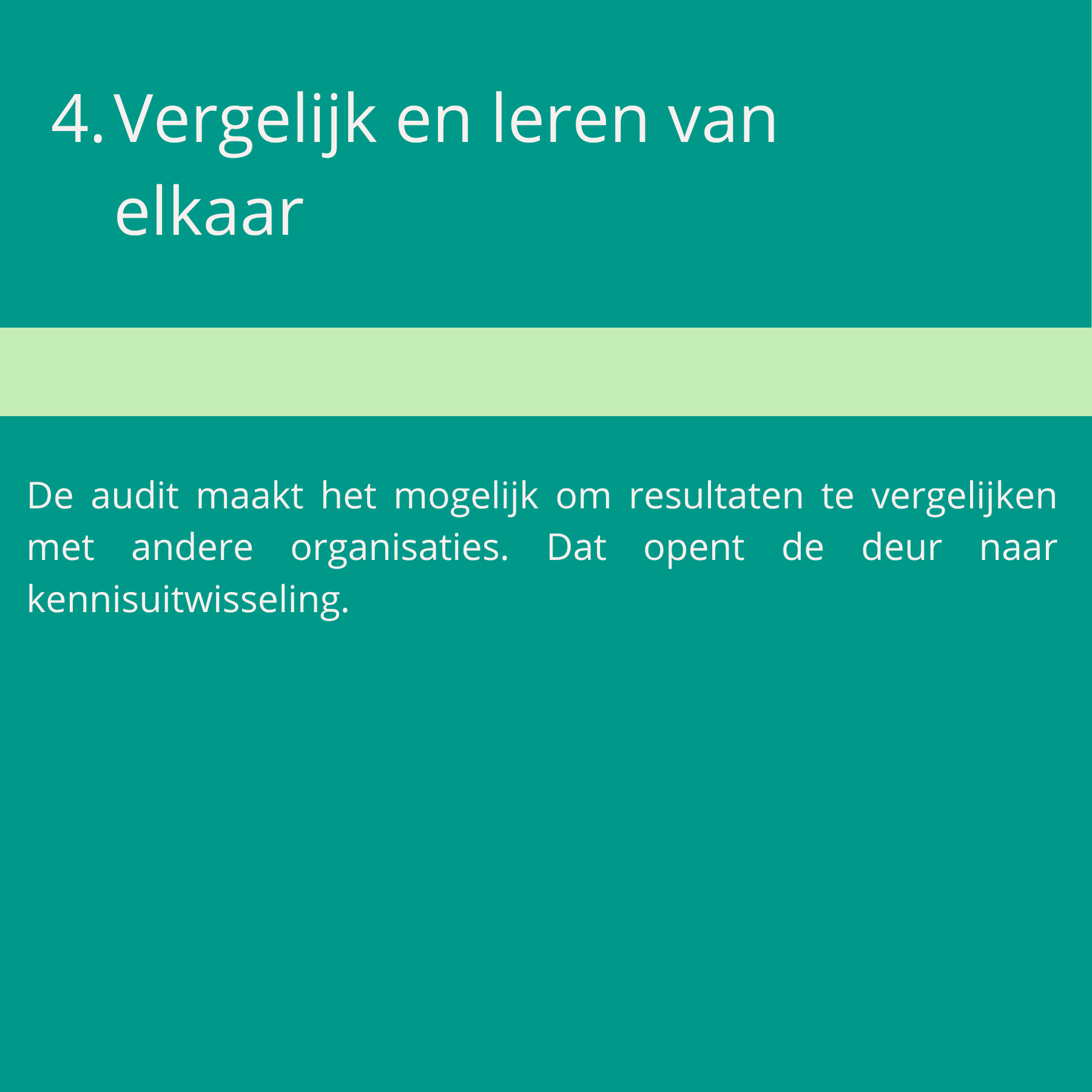 - Het met elkaar meekijken bij de audit en zo ook van elkaar leren