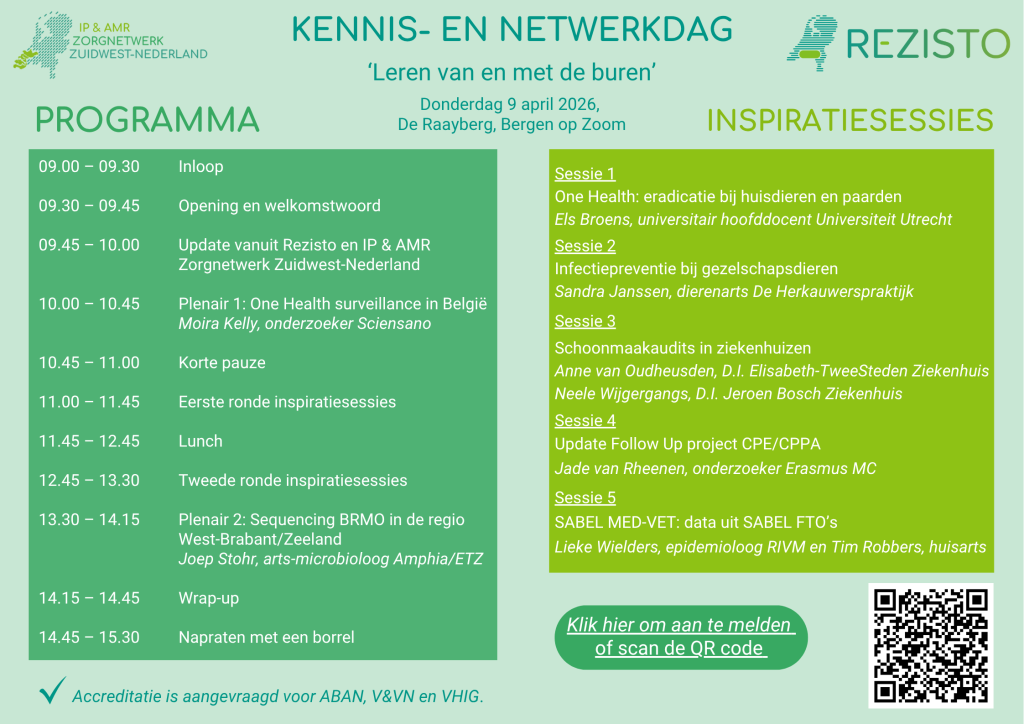 Rezisto Regionaal Zorgnetwerk Antimicrobiële Resistentie Noord-Brabant > Agenda > 9 april 2026 Kennis- en Netwerkdag 2026: Leren van én met de buren